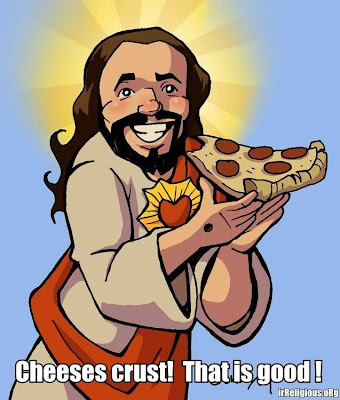 Cheeses crust!. That pizza is good! Jesus loves pizza funny pun meme